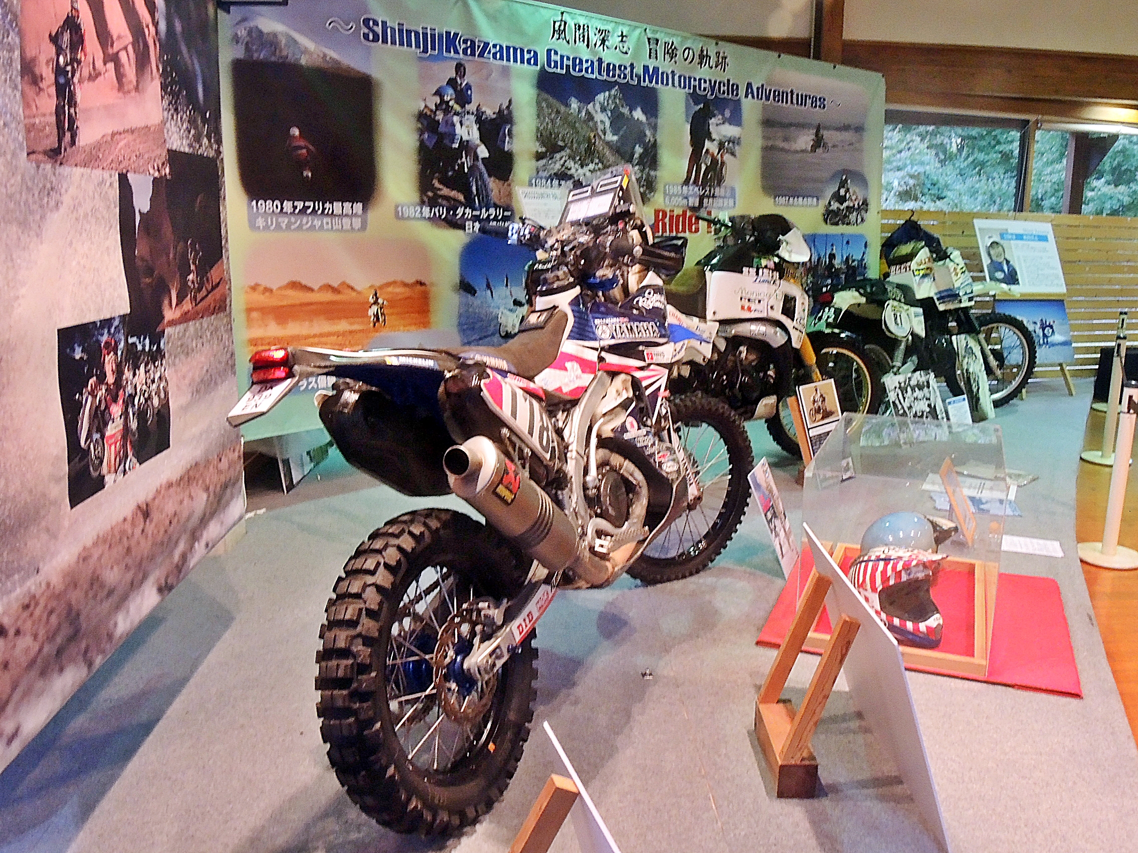 2週間も前の話ですが、道の駅みとみに、冒険家・風間深志さんのバイクを展示して来ました。
